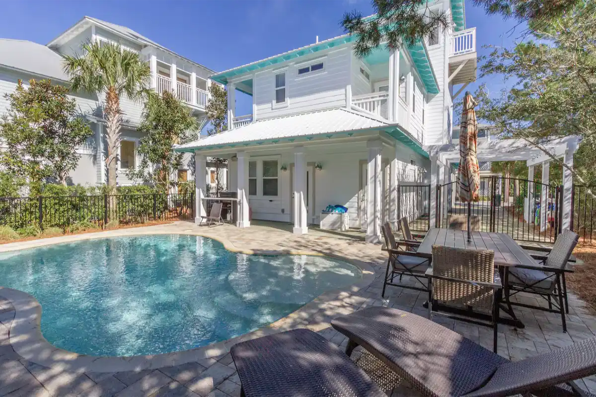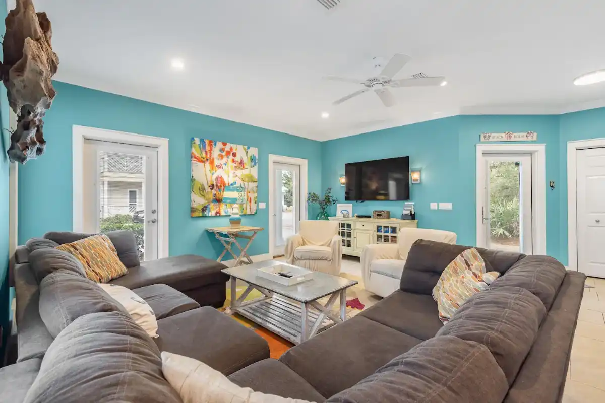 Escape to The Loopy Crab, a vibrant oasis nestled in Seacrest Beach, where a large private pool beckons for family fun. This colorful abode boasts an open floor plan, perfect for creating shared memories.